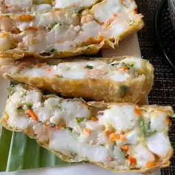 #Shrimp and bean curd (love it the most) Firmly chopped shrimp, packed together in crispy fried bean curd