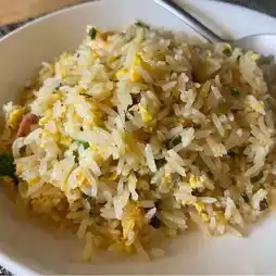 #Fried rice with shrimp and red pork (I thought I would eat less rice, afraid of losing my strength, but in the end, one plate was not enough, I had to order more, it was so delicious, stir-fried well, fragrant with the pan, stir-fried dry, the rice grains were separated Taste is right for the tongue)