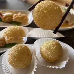 #Fried sesame cakes Soft and chewy dough, flowing sesame filling, just the right amount of sweet