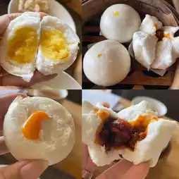 #Steamed buns Cream filling, red pork, minced pork, flowing salted egg filling Order one of each filling, no need to order the whole basket. Taste is good. Soft dough