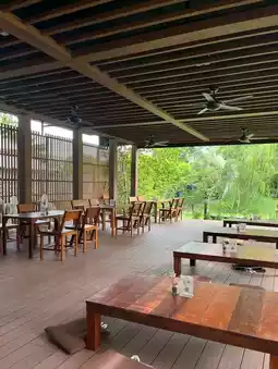 •Wooden terrace zone🛖If you want a Japanese feel, a table feel, or just walk a little further and turn in to sit. That point will be a beautiful wooden terrace, very Japanese style.
