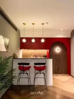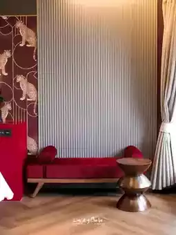 💋 We stayed in the Red Room, a hot red room, 🥂 There is a small bar corner where you can sit and chill. It's so chic. For anyone who wants to stay in this room, I recommend that you be quite familiar with each other 🤣 Because the bathroom has a door and a clear glass partition You can see through the bathroom and the bed 😝 Creak~
