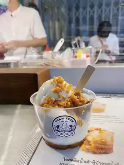 Let's go eat at Yaowarat! We went in the evening so the sun wouldn't be so hot, lol. And the light for photos would be good. The photo spot is right on the side of the road, lol. It's beautiful and chic in Yaowarat style. Let's start at the first shop. The shop is located on the corner of the alley by the road. My favorite menu item is the fried noodles! I've been there once, but when I went again, the shop wasn't there anymore, so I tried another shop. The taste was the same, lol. - Hong Kong style fried noodles?! This menu item is delicious because it has a new aroma, lol. I think it's fried over a high heat. Each plate is 100฿. It's good for 2 people. - Fish maw in red soup. This was just so-so. It wasn't wow, but it was just your typical fish maw. And we ended with dessert. This shop is a must-eat every time I go to Yaowarat. 💖🥺🤏🏻"YUANYUANMANMAN" is a tofu ice cream and ginger soup shop. It's a small shop like a pushcart. 📍Located in the Texas Alley, Yaowarat. Their ice cream is not too sweet, it smells like soy milk, it's delicious and goes well together. Plus, they have crispy fried dough sticks to chew on, along with the ginger-flavored bua loy. It's so good! Price 50 baht/cup, very delicious, you have to try it. #Yaowarat #Delicious food #Chinese food #Street food #Ice cream #Soy milk #Bangkok