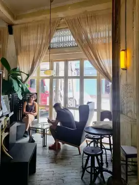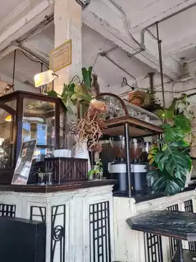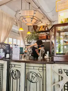The hot weather is not good. You have to stop by a cool coffee shop decorated with classic antiques and indoor plants, giving it a very classy vibe.