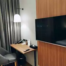 The bathroom was clean, with complete amenities, strong Wi-Fi, a work desk, and a smart TV. What more could you want?
