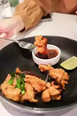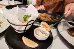 With fried squid, the chef made it himself, eat with the drinks you ordered. Works!!