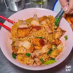 🍜 Crispy Pork Noodles The noodles are soft and chewy, and go very well with the crispy pork. The crispy pork is big, the meat is soft, and the skin is crispy.