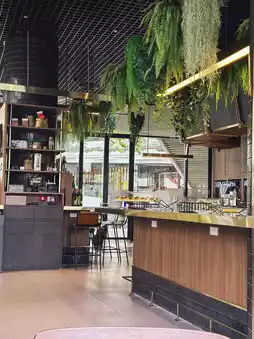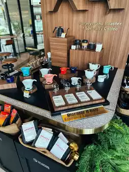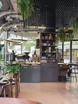 Great atmosphere, there is a coffee roasting factory here, so awesome
