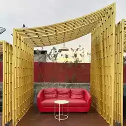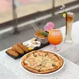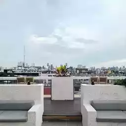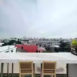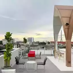 Today, we're going to 4 Monkeys Hotel & Rooftop Bar. We found a cool rooftop bar with a great view. It's located in the heart of Khao San Road. Let me tell you, this place has a very beautiful rooftop view. In the evening, around 6:30 p.m., the atmosphere is amazing. They also have cocktails and mocktails with full service. The food is also very generous. I guarantee you'll be satisfied. Another thing is that this place has accommodation with a very cute price. There's also a large swimming pool and movies to watch. Come and follow me..^^