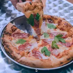 American pizza, soft texture, with quality ingredients for us to taste, both dough and toppings, very good. Especially Bacon Maple Pie, delicious, Cream cheese pie with bacon, topped with Maple syrup, goes very well together.