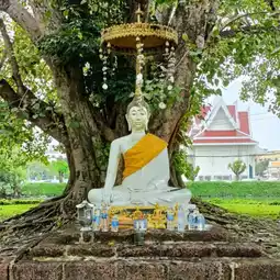 🙏It is an old temple, built in 1941. It has important permanent objects, namely the white Sri Mahathat Chedi, which stands out as a unique identity. Inside, there is a small golden chedi enshrining the Buddha's relics. On the walls, there are niches containing the ashes of those who have served the country. The temple is spacious and shady with large trees. You can worship the Buddha, pay homage to the Buddha's relics, and make merit according to your faith at various points.