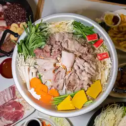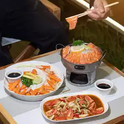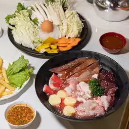There are various sizes of pork sets to satisfy your hunger, starting at only 330.-. Full of marinated pork, pork belly, pork liver, fish, shrimp, crispy squid, jellyfish, tofu, crab sticks, vegetable sets, chicken eggs. Every set is served with a set of fiber vegetables that are fresh, clean, and hygienic.