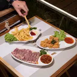 If you like something in particular, you can order separately. Pork belly, marinated pork, bacon, small intestines, and beef. Let me tell you, arrange the stove well. This time, you definitely won't have time to grill. Especially when eaten hot with the legendary secret sauce, it's even more delicious. There are also snacks and spicy dishes ready to serve!