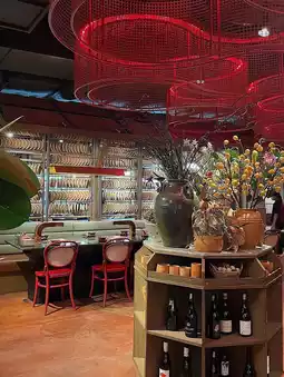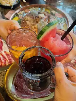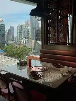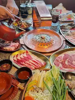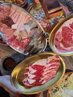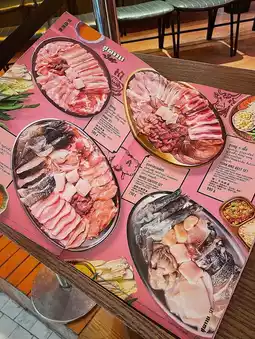 A large soup compartment, a charcoal stove that's hot enough to grill comfortably and an innovative smoke extractor. Eat grilled pork without smelling bad, cool air conditioning, good music, and a view on the 6th floor that's incredibly spectacular