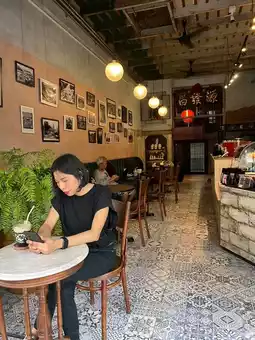 The shop is decorated in a teahouse style, pleasing classic lovers, giving a feeling like going back in time to the golden age of this building. The building is still designed with old walls, very beautiful. The walls inside the shop are hung with old pictures telling stories of the past. Sit comfortably and experience the warm atmosphere, going back to the past.