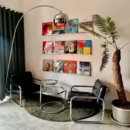 สายคาเฟ่ห้ามพลาด! คาเฟ่นี้ Vibe ดีสุด ๆ ร้านนี้เขาตกแต่งด้วยสไตล์ Mid-century ที่ผสมผสาน ความ Modern และ Vintage ได้อย่างลงตัว แต่ก็ตัดด้วยเฟอร์นิเจอร์สีสันสดใส ทำให้ถ่ายรูปได้ทุกมุมเลยเทอ ชั้น 2 ของร้านเขาเป็น Studio ด้วยน้า ขึ้นไปทำคอนเทนต์ได้