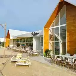 It's beautiful during the day, but even more beautiful at night. The atmosphere is very good, very chill. The shop here is very spacious. There are both indoor and outdoor zones, a corner for children, and in the evening, they have live music 👍 You can come with the whole family.