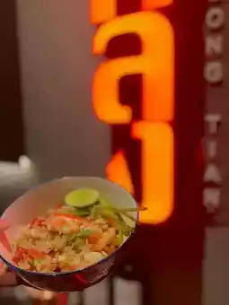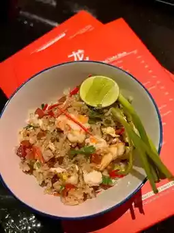 A little price but very delicious. It is Thai-Chinese food. The atmosphere is friendly.