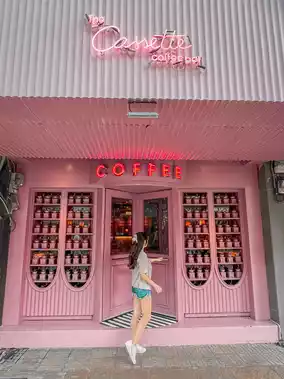 The Cassette Coffee Bar is u missable with its beautiful pink exterior and interior, and its iconic turnstile entrance. They had interesting coffee flavors and i got a orange coffee latte.
