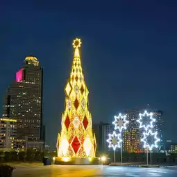 Christmas lights at Iconsiam Bangkok create a mesmerizing spectacle, transforming the iconic shopping destination into a festive wonderland. The vibrant display weaves through the architectural marvel, adorning the facades with a kaleidoscope of colors. As night falls, the lights dance in sync with cheerful holiday tunes, captivating visitors with their dynamic patterns. The Chao Phraya River reflects the shimmering brilliance, enhancing the magical ambiance. From twinkling fairy lights to elaborate installations, Iconsiam's Christmas lights evoke a sense of joy and unity, bringing people together to celebrate the spirit of the season in the heart of Bangkok's bustling cityscape.