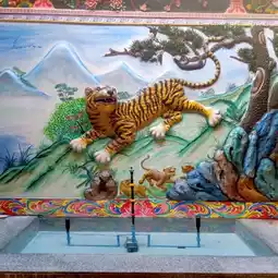 This shrine is over 300 years old, built in the middle of the Ayutthaya period. From the large building built into the building is built in the shape of a mountain. The roof is covered with colored tiles. There are 2 stucco dragons. Inside is the altar of the god Leng Bua Eia.