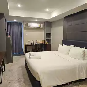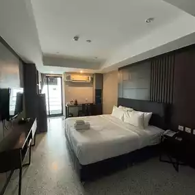 It's a very good hotel, the quality exceeds the price. We stayed because we were going to catch a flight the next day, so we looked for a place to stay near Don Mueang. But if you don't have a private car, it's quite far. The hotel is in an alley, there are a lot of places to eat, there are motorcycle taxis, 7-Eleven, etc. The front desk is very good, the staff is lovely, they will take you to your room, the room is very good, very spacious, with complete amenities, good towels, good bathroom, and a mirror for makeup. It is considered a very good hotel. If anyone is waiting for a flight or looking for a place to stay near Don Mueang, I recommend this place. 🤍🍃