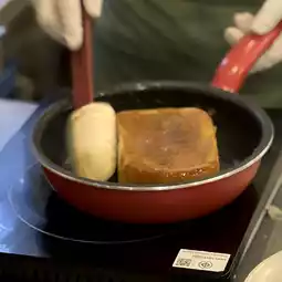 Put it in a pan, mix it with caramel butter.