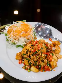 • Stir-fried Sea Bass with Chili and Salt 300฿