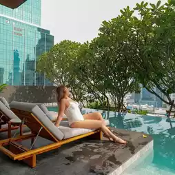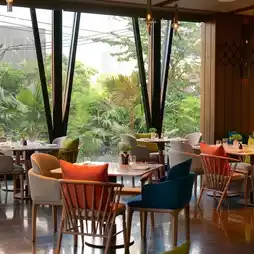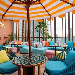 In the evening, come and chill at Mimi's Bangkok, a rooftop bar on the 25th floor of the hotel, decorated in colorful colors. Sit and watch the sunset in the evening with a view of tall buildings, while eating and drinking very chill.