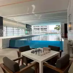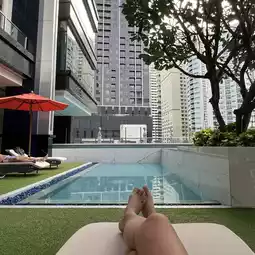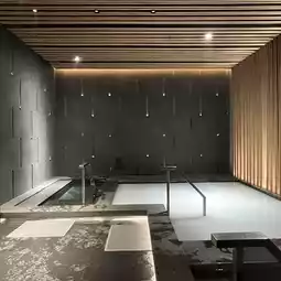 Beautiful swimming pool There is an outdoor area for sunbathing, catching the breeze, chilling out and an indoor pool area. In addition, there is a fitness room with a beautiful view, a sauna and, most importantly, an onsen pool for soaking. It feels very relaxing.
