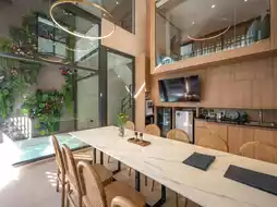 #Bangkok SHAN Villas Sukhumvit is located in Soi On Nut 18, offering a peaceful atmosphere away from the hustle and bustle of the city. The hotel's minimalist rooms are simply and elegantly decorated, offering views of the pool or the lush gardens. With 45 rooms in total, including standard rooms and pool villas, there's something for everyone. The rooftop restaurant, Mekha by Shan, offers a unique dining experience within a crystal dome with 360-degree city views.