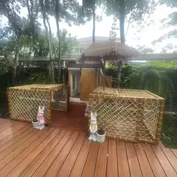 The shop will arrange a cute cage for the dogs.