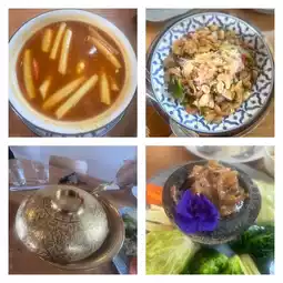 😍Today, we came hungry, so we ordered a set of southern food. There was sour curry with shrimp, a truly southern flavor, a traditional glass noodle salad, shrimp paste chili paste, and side dishes. The shrimp paste is delicious beyond belief. Then, we had a famous dish from Phuket, Moo Hong, which the owner of the shop recommended as delicious according to the authentic southern recipe.