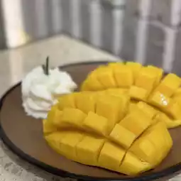 Most of them serve sticky rice, but if you order fresh mango, you can eat only raw mango with whipped cream👍🏻