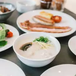 Another great thing is the Bangrak Grill Rooftop Restaurant, a great view, delicious food, and the Hua restaurant with a full breakfast. There are many menus. Traditional coffee, Hong Kong congee, and Royal Chicken Rice are the best.