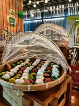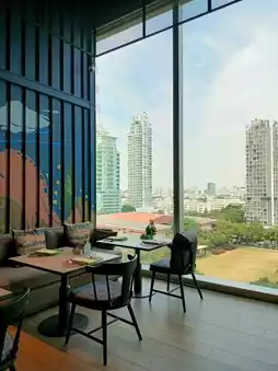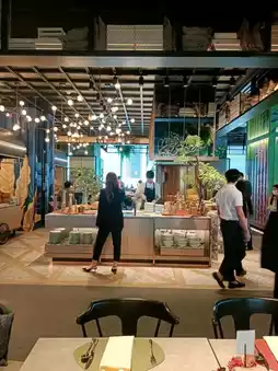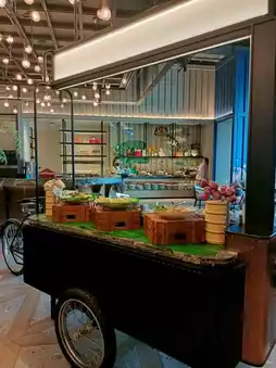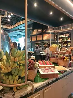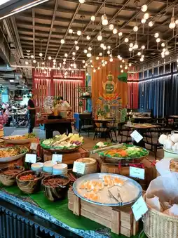It is spacious and can accommodate a large number of customers. Every corner is beautifully decorated in a street theme. There are carts on display, giving a distinct Thai atmosphere and a city view.