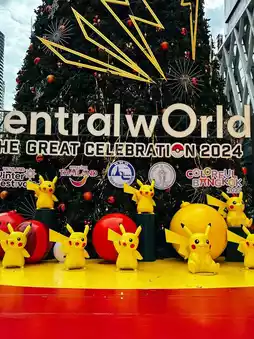 🐻🎄Come take a photo of the Christmas tree with the giant Pikachu, 15 meters tall, and the Pokémon along with a special surprise gift from centralwOrld with a super cute check-in point. There are so many of them. They are so cute! 📸⚡️Pokémon fans must follow! 👌🏼🫶🏼📸💛