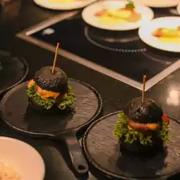 Wagyu burger, roast duck, Buddha Jumps Over the Wall