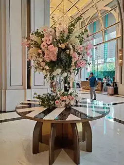 🌟Atmosphere: The interior is beautifully decorated with beautiful chandeliers and a design that combines Thai and modern architecture. With many facilities The spacious lobby area is a waiting area and a drink lounge for ordering. There is a restaurant, a fitness room, a spa, a swimming pool, a meeting room, and a spacious parking lot. Anyone looking for a beautiful hotel near the BTS line must try to stay here.