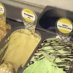 Homemade ice cream, small but not ordinary. There are many types of ice cream, such as cookies and cream, green tea, mint chocolate, and fruit sorbet.