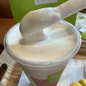 When eating, take it slow. Try the creamy, smooth, and soft cheese cream on top first. It's a little salty, creamy, and a little sweet. It's really delicious.