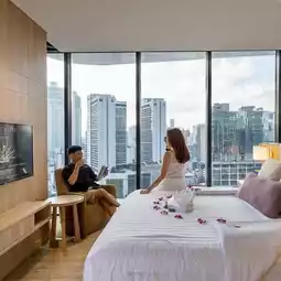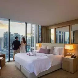 - The location here is very good. It is next to Emporium shopping mall and opposite Emquartier. For those who like to exercise in the park, you can walk from the hotel to Benjasiri Park in just 10 minutes. For Bum and Phi Tam, we focused on using the hotel's facilities, taking pictures by the pool, and exercising lightly using the 24-hour fitness center here.