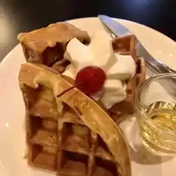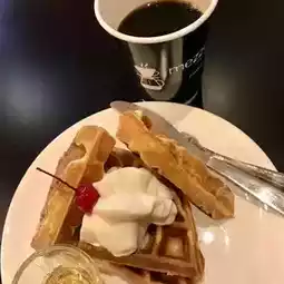Waffles with honey and a hot americano to go with are undeniable for afternoon lay back after long exposure in the heat.