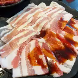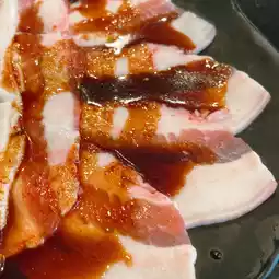 🐷 Pork belly, this one will be topped with sauce, its part is thicker than Bacon, but they top it with sauce to help cut the greasyness to some extent. Those who like it will definitely like it