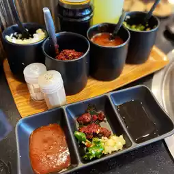 There are 2 types of dipping sauces, chili paste, gochujang and ponzu. I like it strong, add chili paste, add fresh chili, lime, garlic, dip in the sauce, delicious