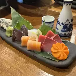 The atmosphere is good. You can sit at a mat table or at the bar and watch the chef cook.