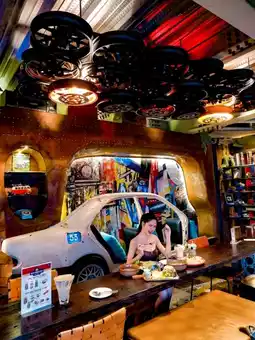 Today, C would like to recommend a super cool hotel in Huai Khwang area that will make your hotel stay more lively. That place is MeStyle Garage Hotel Bangkok. The decoration is amazing. It combines art and various types of cars, which is perfectly done. No matter which angle you take a picture from, the pictures will come out looking very stylish.