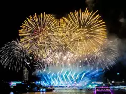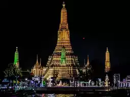 🛳 Dinner on the luxurious boat Wonderful Pearl Cruise that will take you along the Chao Phraya River bend. Especially during this time, there is a good opportunity to see Vijit Chao Phraya 2023 (Vijit Chao Phraya), a spectacular light, color, and sound show along both sides of the Chao Phraya River, such as Rama VIII Bridge with a 3D laser show, flying 🚀 drones transforming various shapes / 🌠 Light & Sound of the Prang of Wat Arun Ratchawararam / 🎆 Fireworks at Phra Phuttha Yodfa Bridge / 🏰 Projection Mapping show at River City Bangkok (Vijit Chao Phraya 2023 (Vijit Chao Phraya) is until December 31st.)