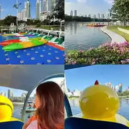 They recommend going around 3-4 pm. The mood is just right, not too hot. But there will be a lot of people right now. You might have to wait in line a bit because life jackets are limited. It's almost a long holiday. If you're looking for a place to relax in the city, I recommend Benjakitti Park. Go for a picnic, go for a walk, take pictures, breathe in the air, paddle ducks, and paddle a kayak. I highly recommend it! !