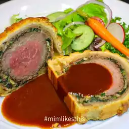 - Australian Striploin Australian striploin, grilled to perfection, soft meat, served with garlic, tomatoes and side vegetables.